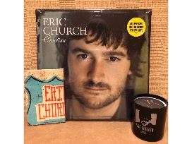 Eric Church Carolina Limited Eition Yellow Vinyl - autographed w/ Eric Church "Fresh Off Tour" scented candle & concert poster notepad 2 pack. Second photo shows actual signed vinyl. **Shipping will be added on top of the winning bid amount.