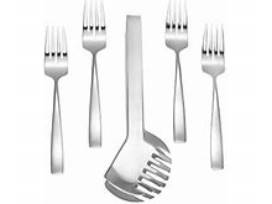 Serving set includes (4) 7-inch salad forks and (1) 1-1/2-inch salad tong/server.