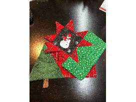 Beautifully handcrafted quilted holiday table runner (16" X 64"). Machine Washable. Includes two insulated mug rugs that could also be used as potholders or hot pads.