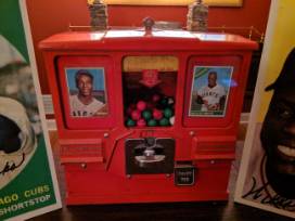 Looking for that truly rare and memorable item? You'll have the chance to try it out at the NVRQT event! This authentic vending machine from the '50s not only allowed kids to indulge in their baseball card collecting habit, but also added a sugary treat, all for the price of two cents! The machine has been carefully restored to its operating order with original equipment, including the fire-engine red original paint. Your own stack of baseball trading cards included!
