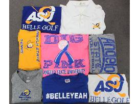 It's All About ASU! - Autographed ladies' batting helmet & softball,1 - XL & 1 - XXL white golf polo shirts, 2 - XL blue Belles golf tshirts, 1 - L & 1 - XXL white Belles golf tshirts, 1 - L gold Tennis tshirt, 1 - L gray v-neck Soccer tshirt, 1 - M gray Volleyball tshirt, 1 - L blue #BELLEYEAH long sleeve tshirt, 1 - M "Dig Pink" Volleyvall tshirt, , 1 cannister Wilson US Open tennis balls & 1 black & white mesh cap