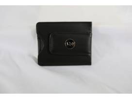 Black leather money clip/cardholder with engraved greek Delta Sigma Phi letters.