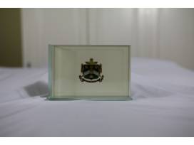 Glass frame/paperweight with lovely full-color, printed DSP coat-of-arms.