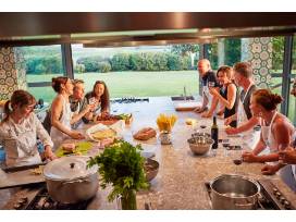 La Cucina Sabina is a culinary vacation resort catering to those who enjoy active, luxury travel at a relaxed pace while experiencing real Italian culture. The experience consists of seven days and six nights for two people at the eight bedroom luxurious villa. All rooms have private baths and American king size beds. You will experience four hands-on cooking lessons of 2-3 hours, excursions to wineries, castles, Umbrian town of Orvieto, Rom, Tivoli, meals, wine and coffee at all meals. More can be found at www.lacucinasabina.com.
