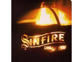 Brand new, fully assembled outdoor fire pit. Branded with SinFire Whiskey. Comes with protective screen top cover, cooking grill, and poker.