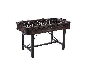 This 56 inch traditional foosball table can help you act on your competitive spirit with your siblings and friends. This table is full size and features four player rods with robot style players on each side of the table. The table is designed with sturdy metal legs and features hidden leg levelers, ensuring top notch stability, even if the game gets a little heated. It also comes with manual bead scoring sliders on each end and 2 soccer balls. It's a great addition to any room!