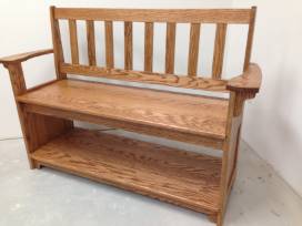 This sturdy, oak bench with beautiful Salem Maple stain is suitable for a playroom, foyer, bedroom, mudroom, etc.