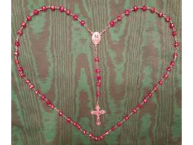 - Sacred Heart Crystal Rosary ($40 value) - Gorgeous! Hand-crafted of round, faceted, red Czech glass beads with aurora borealis finish. Centerpiece has double-sided images of the Sacred Heart of Jesus & the Immaculate Heart of Mary. Crucifix has little hearts on it. Crucifix & centerpiece are made of nickel silver.