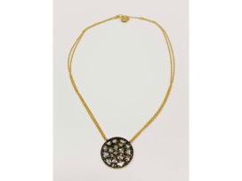 Freida Rothman 18th double strand pendant necklace with hand set stones. 14 karat yellow goldplated and black rhodium-plated sterling silver.