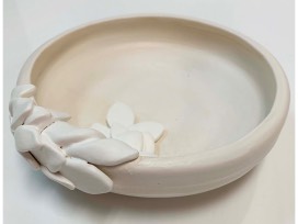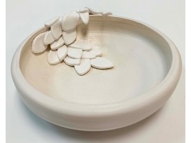 Handmade by Hospice Artisan, this ivory dish is has delicate leaves trailing into its base.