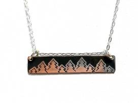 Handmade by The Bearded Jeweler, this pendant displays the forest shape against the night sky in the most stunning way.