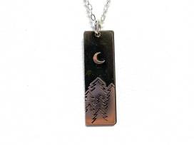 Handmade by The Bearded Jeweler, this tree night skinny bar pendant will make you want to bask in the light of the moon and stars.