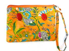 Included is a wrist-let handmade in India. This clutch will hold a cell phone, lipstick/chapstick, keys, credit cards, and more while transferring easily from purse to car to home!