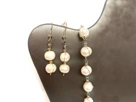 The necklace is 36" long and both the necklace and bracelet are dazzling with genuine white pearls.