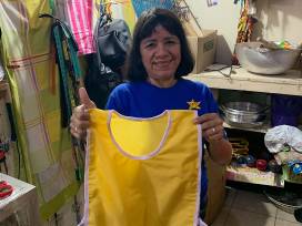 This painters apron was handmade by Alma from Nicaragua. She is grateful to her mentor Suzanna. She has learned to better organize her little shop so that her customers can find what they need. Suzana also helped teach her money management principles so that she could manage her income and shop expenses. Alma is growing in greater self-reliance and is very grateful for the support and mentoring from Mentors International.