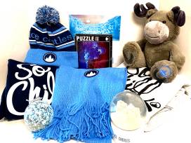 This auction includes: 4 tickets to Ice Castles in Midway, a 200 piece Ice Castles puzzle, a snow globe, an ornament, a plush-stuffy moose, and Ice Castles scarf, a "So Chill" sweatshirt (size L), a grey "So Chill" sweatshirt (size M), and an Ice Castles Beenie.