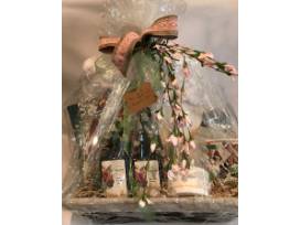This gorgeous basket includes a $150 gift certificate, Monarch Robe OSL, Musee Blood Orange Candle, matches, Cornflower Rose Salt Soak, Bourbon Lavender Shower Gel, Bourbon Lavender Body Lotion, Sanitas Spring Skin Re-Set, Sanitas Gentle Refining Mask, Sanitas Milk & Honey Sugar Scrub, Archive Butterfly Journal, and Archive Feathered Pen.