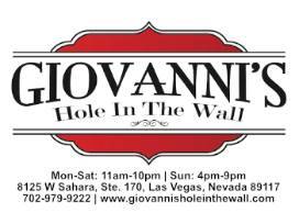 17Giovanni's Hole In The Wall $25 Gift Certificates