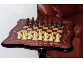WorldWise Imports: Red Sculpted Italian Pedestal Chess Table with Rosewood Chessmen