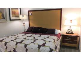 The package includes, 1 Cal-King or Queen headboard, 1 bed base, 2 nightstands, 2 lamps, 1 dresser, 1 desk, 1 desk chair. Full package can be picked up at our local warehouse, located at 4545 Cameron Street, across from the Orleans Arena. Open daily 10a-6p