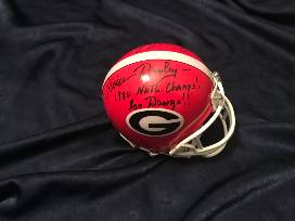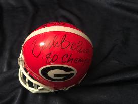 UGA Mini Helmet signed by Buck Belue with inspiration. Inspiration reads "80 Champs! Vince Dooley - 1980 National Champs! Go Dawgs!!'