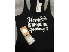 Brick & Belle Racing super soft tank 50% Size:LG Checkered Flag Earrings, handmade by PinkDivaCreations and Brick and Bell Head Band