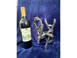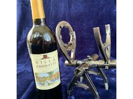 Unique, hand made, one bottle wine holder, crafted from current used Indy Car gearbox. Includes one bottle of Andretti Vineyards, Villa Andretti 2015 Napa Valley Merlot.