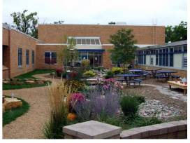 Range View Outdoor Learning Classroom and outdoor tables in the area. A place for classes to go and learn while being outside. This will allow for a change of scenery for the children to learn and grow outside of the classrooms.