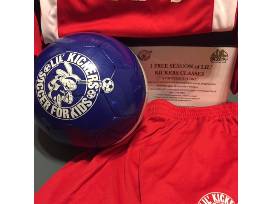 Enjoy a free season of our child development program Lil Kickers, soccer classes for 18 months - 9 years old. Also includes soccer ball, jersey, soccer bag, car decals