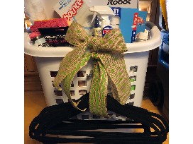 Roomba 690, rolling laundry basket, microfiber cloths, waterblock gloves, spot remover, spray cleaner, Clorox wipes, Goo-gone, Magic Erasers, Bounce, Duster, lint roller, and velvet hangers