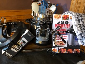 Who doesn't love an appliance that saves time in the kitchen? This package will definitely help you do that. These items include a 6 qt. Insta Pot with 2 steamer baskets, steamer rack, non stick spring form pan, egg rack, egg bite mold, cup cake molds, egg molds, tongs, a recipe book, glass lid, and dish towels.