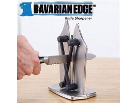 The Bavarian Edge Knife Sharpener - home, sharpen and polish knives by simply pulling knives through! The secret is two independent spring action sharpeners made of ultra-hard tungsten carbide that flex and contour to many blades and angles.