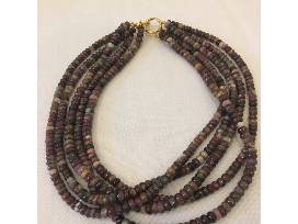Worn together or separately, this package also includes a 20" five-strand fashion necklace of rustic tourmaline rondel beads with a vermeil C-clasp. The beads are a melange of natural berry and earth tones and will surely go with any outfit!