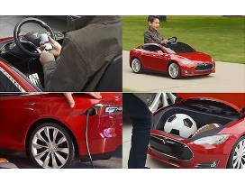 Tesla Radio Flyer Model S Electric Kids battery powered car. Color: RED Includes a Sound System, Working headlights, battery powered and for ages 3-8.. More information on website: www.tesla.radioflyer.com/build.html