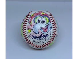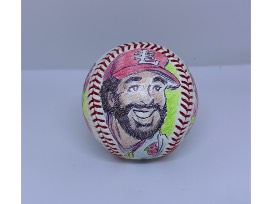 This Ozzie Smith signed baseball is enhanced by renowned Jim Henson cartoonist, Guy Gilchrist.