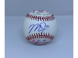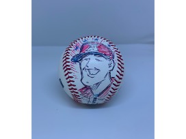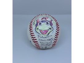 This Mike Trout signed baseball is enhanced by renowned Jim Henson cartoonist, Guy Gilchrist.