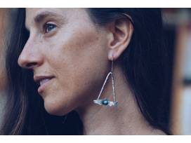 Hand sawn and hammered earrings made from recycled sterling silver and American-mined Carico Lake turquoise.