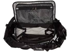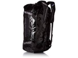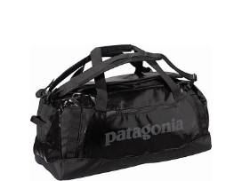60L Patagonia Black Hole Duffel in black. This workhorse organizes your gear and has enough space for a fun-hog weekend or a well-organized extended trip. Made with a burly, lightweight 100% recycled polyester fabric, 100% recycled polyester lining and 100% recycled nylon webbing.