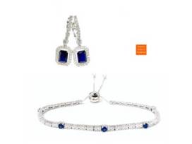 1Gorgeous Sapphire Earrings with Lever Back + Adjustable Tassel tennis Bracelet!