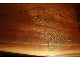 Handcrafted by Jack Divine, this exquisite walnut bistro table with stools features a turquoise inlay. Gorgeous craftsmanship!