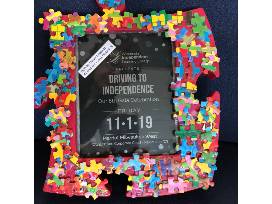 ART DECO PUZZLE GUITARand Frame COMBO! WILC Students worked on this fun, unique piece of art, perfect for a music or family room, office or home. This is combines with a unique Puzzle Frame made by Jake, a WILC student. The Autism Awareness Ribbon is of a puzzle pattern which reflects the complexity of the autism spectrum. The different colors and shapes represent the diversity of the people and families living with the condition. Guitar hanger is included!