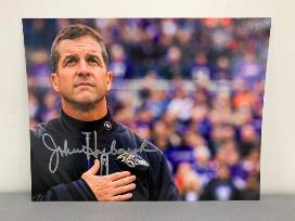 One (1) Certified authentic autographed photo of John Harbaugh, Head Coach of the Baltimore Ravens.