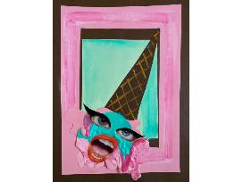 Cut paper, acrylic paint, magazine collage