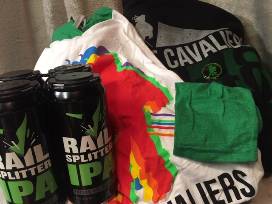 Basket includes: logo black hoodie (XL), long-sleeve rainbow logo hoodie (L), gear collectable coin, Rail Splitter IPA.