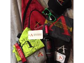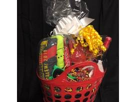 Basket includes: logo messenger back sack, 2019 show shirt (M), logo lime tank (M), log zipper hoodie (L), logo sweat pants (M), sun glasses, lanyard, cell pop locket, luggage tag, Apothic Red Cabernet Sauvignon.
