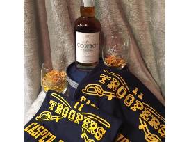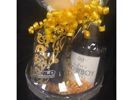 Basket includes: logo lady's t-shirt (S), logo men's t-shirt (S) - may exchange if in Indy while supplies last. Bottle Cowboy Cognac and two DCI large bowl stemless glassware.