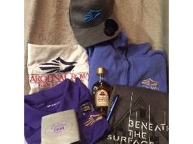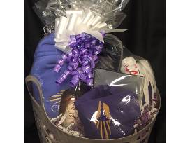 Basket includes: log 1/4 zip fleece long-sleeve (L), 2019 show shirt (L), logo purple sport tek polo (L), logo t-shirt (M), logo ball cap, koozie, lapel pin, pen, Vanilla Crown Royal.