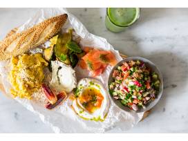Channeling the energy of Tel Aviv's bohemian cafe culture through a New York lens, the restaurant was designed to foster the simple, timeless act of bringing people together around a common table.