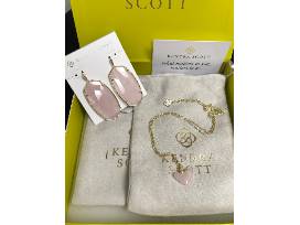 - Earrings with custom oval Rose Quartz stones in a thin Gold metallic frame.