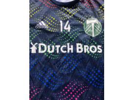 Bid on the 2019 Pride training top worn and signed by Timbers FC player, Andres Flores! This training top was worn during warm ups by Flores on June 22nd at the Timbers v. Houston Pride Night match. Size M.